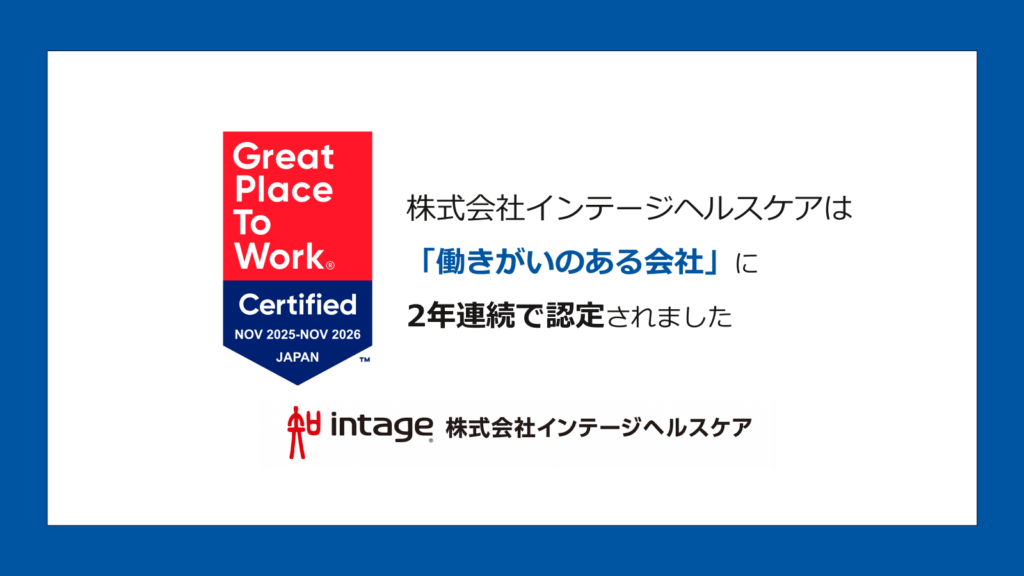 株式会社インテージヘルスケア(本社:東京都千代田区、代表取締役社長:村井啓太)は、Great Place to Work® Institute Japan (以下、GPTW Japan) が実施する「働きがいのある会社」認定において、2年連続で「働きがい認定企業」として選出されました。