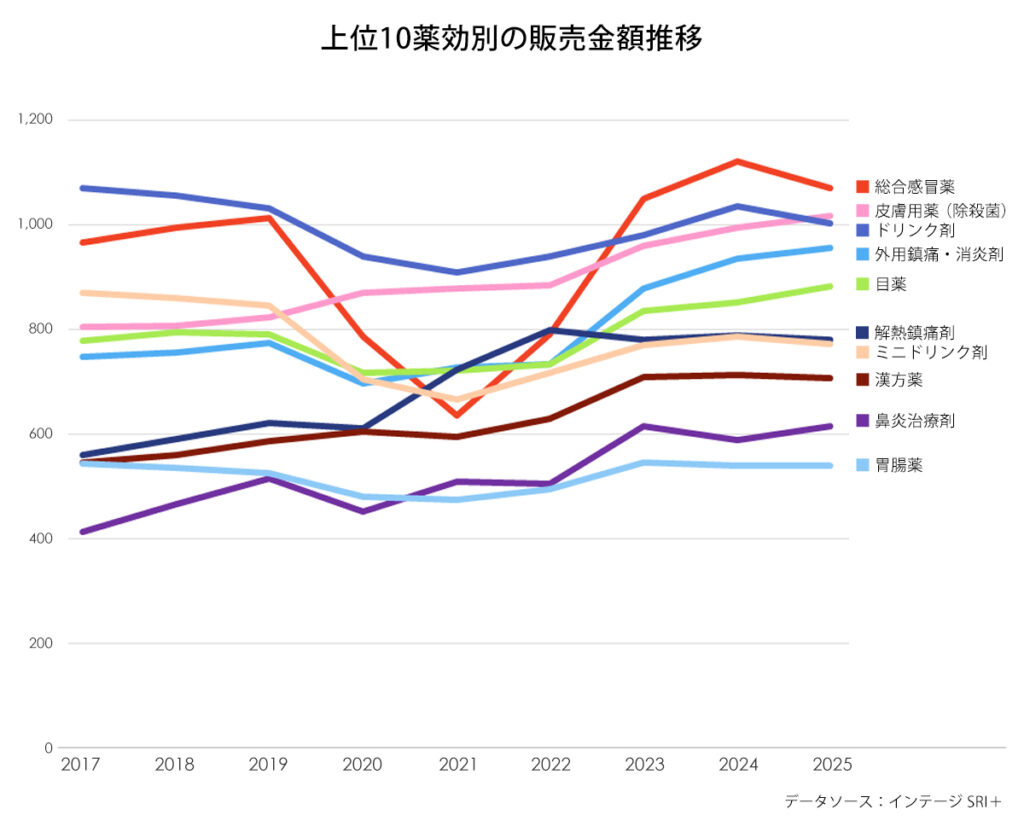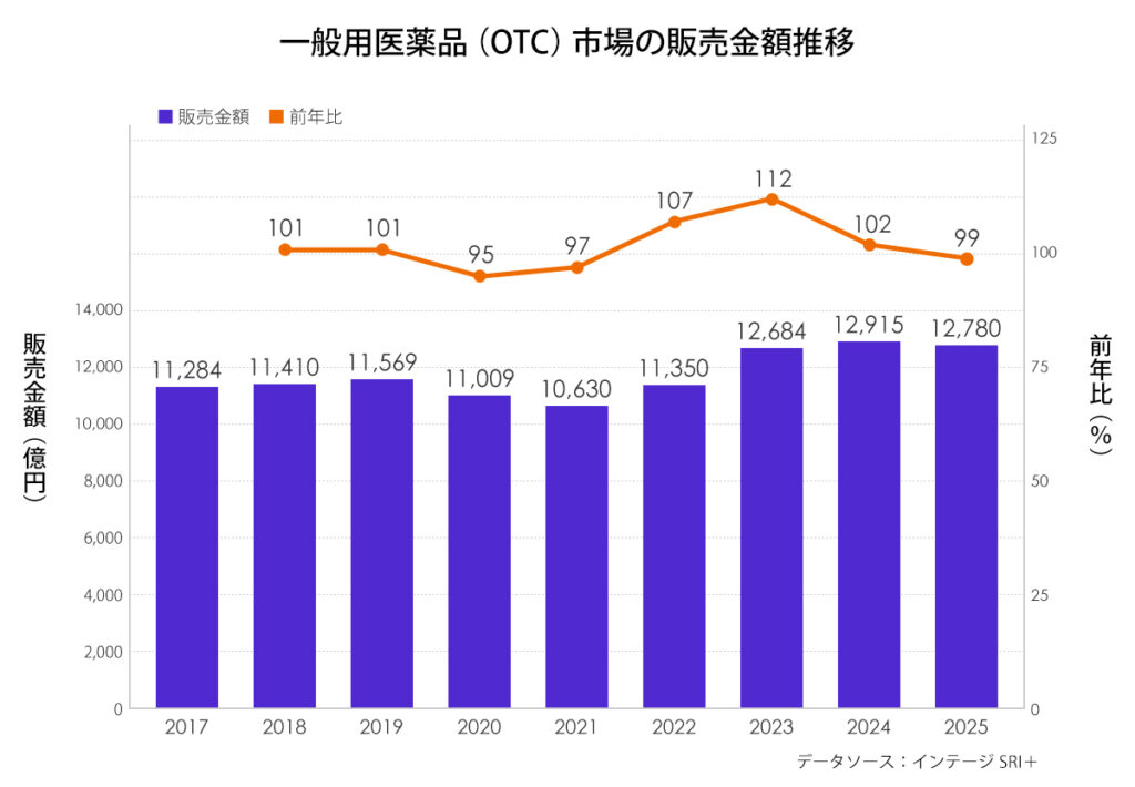 - 2025年のOTC医薬品市場全体は4年ぶりに前年に届かず